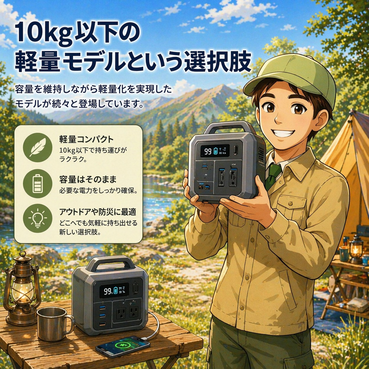 自分の体力と生活シーンに合ったポータブル電源を選ぶことが、安全で快適な電源ライフへの一歩です。