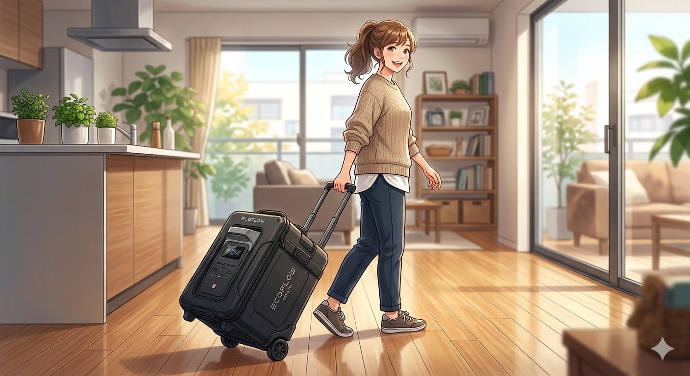 防災グッズやアウトドア用途でポータブル電源を検討し始めると、1000Wh前後の人気モデルが軒並み10kg前後であることに気づき、「自分一人で持てるのだろうか」と不安になる女性の方は少なくありません。